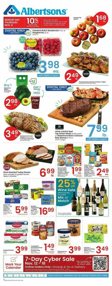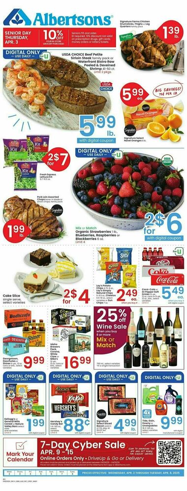 On this page, you will find all the weekly ads for Albertsons. Be sure to browse them before you go shopping. You can also find the opening hours of your favourite store on our website.