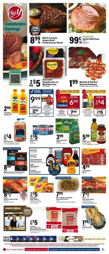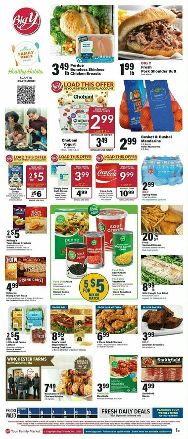 On this page you can discover all the latest Big Y Weekly Ads & Flyers. Big Y's weekly ads feature a diverse selection of items, including fresh fruits and vegetables, meats, dairy products, bakery goods, pantry staples, and more. You'll find exclusive deals and discounts on many of your favorite brands and everyday essentials. Keep an eye out for special offers that may include"Buy One, Get One"deals, discounted prices on bulk purchases, and other promotions that can help you save significantly.