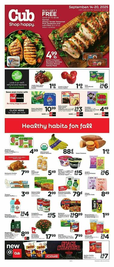 On this page you can discover the latest weekly ad and discounts from Cub Foods. At Cub Foods, your weekly shopping experience gets a whole lot better with the arrival of their enticing Weekly Ad. This trusted neighborhood supermarket takes pride in offering unbeatable savings and exciting discounts to its valued customers.