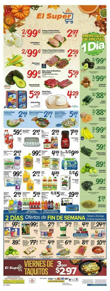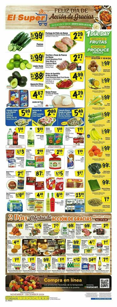 On this page you can fidn the latest weekly ads and deals from El Super Markets. El Super Markets presents its customers with an exciting shopping experience through their Weekly Ad, packed with great deals and an extensive range of products. Each week, El Super releases a new Weekly Ad, featuring a wide selection of groceries, fresh produce, meats, and specialty items. These ads are specially designed to cater to the diverse tastes and preferences of their customers.