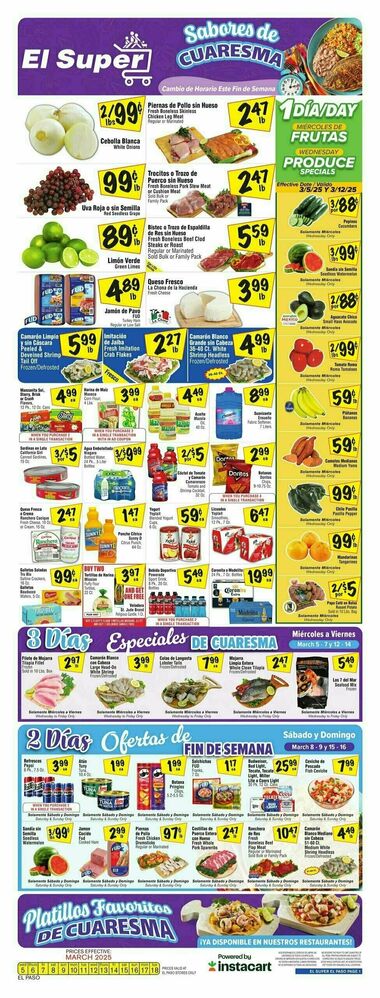 El Super is well-known for its emphasis on Hispanic and Latin American products, and their Weekly Ads reflect this focus. Shoppers can expect to find authentic Hispanic and international food items such as fresh tortillas, spices, chiles, traditional pastries, and a variety of tropical fruits. Whether you're looking to prepare a traditional Latin American meal or simply stock up on everyday necessities, El Super's Weekly Ad provides excellent opportunities to save while getting the products you love.