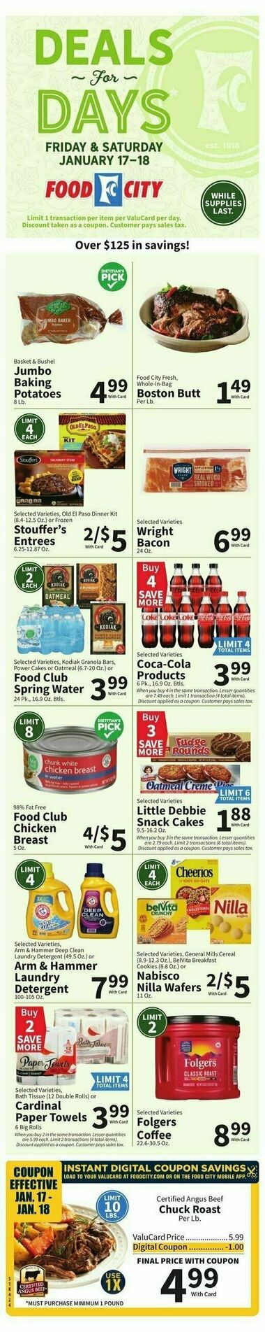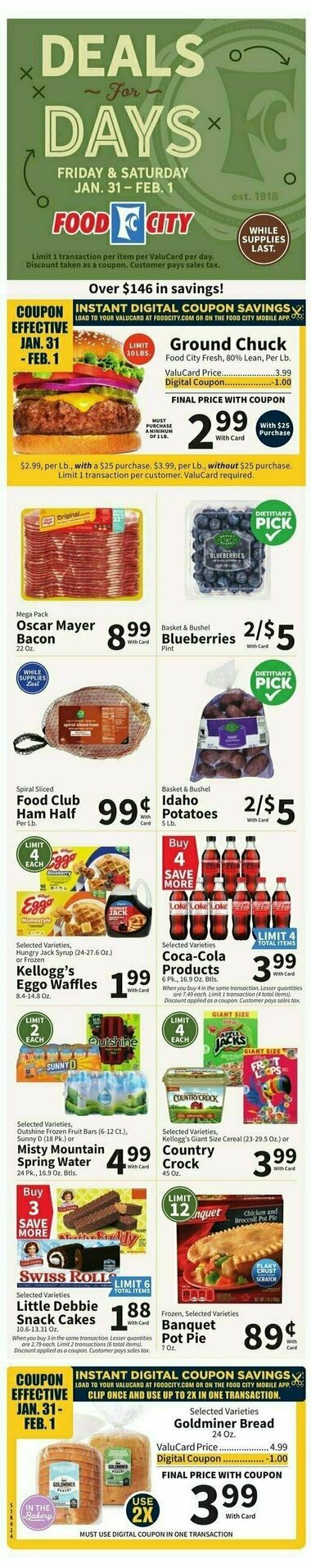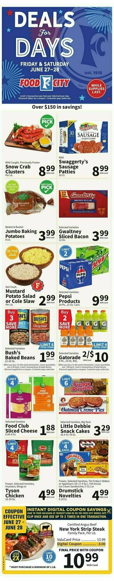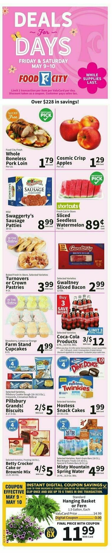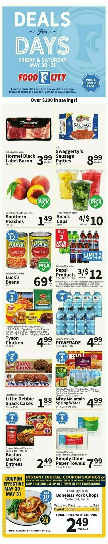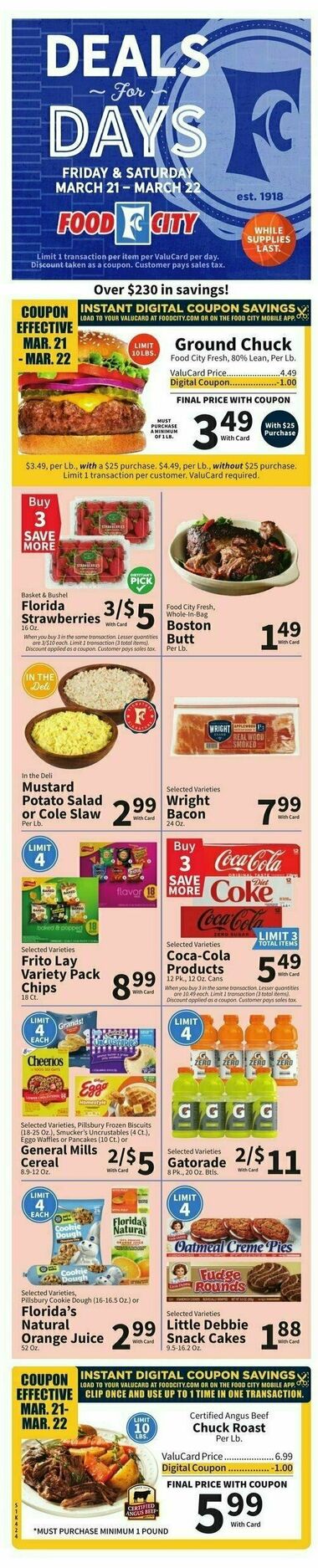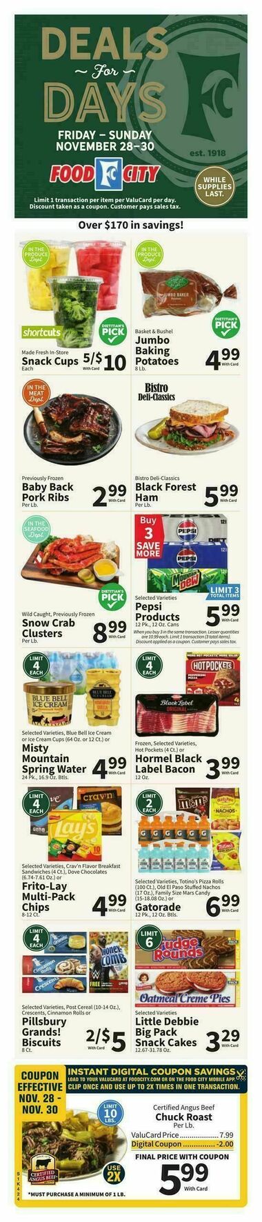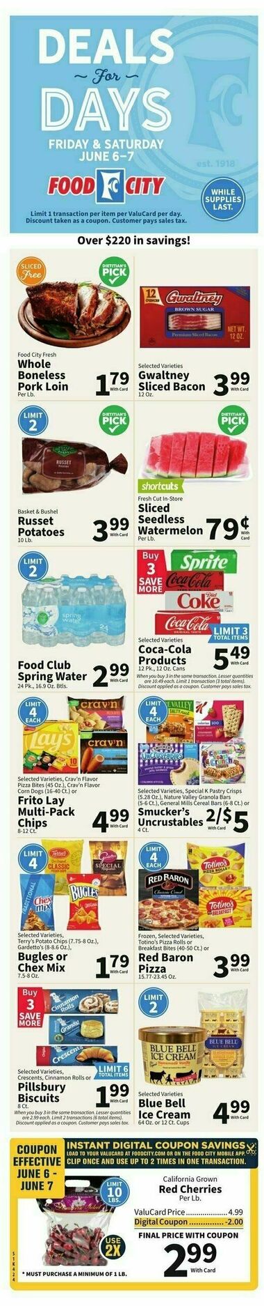 Browse the latest weely ad from Food City on this page. Food City offers a fantastic array of weekly ads and special discounts that help shoppers save big on their grocery bills. Food City's weekly ads are a shopper's paradise, featuring a diverse selection of products that are discounted for a limited time. These ads are updated regularly, providing you with fresh deals and promotions every week. You'll find savings on a wide range of items, including fresh produce, meats, dairy, bakery goods, pantry staples, snacks, beverages, and much more. It's the perfect opportunity to stock up on your favorite products while enjoying significant savings.