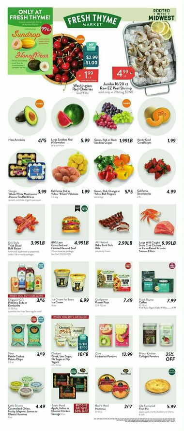 On this page you can explroe all the latest Fresh Thyme Farmers Market’s weekly ads and deals. Each week, Fresh Thyme Farmers Market provides shoppers with a fresh batch of savings and promotions, ensuring you can enjoy quality products at affordable prices. Whether you're looking for fresh ingredients for your next meal, natural and organic products, or simply trying to save on your grocery bills, Fresh Thyme Farmers Market's weekly ads have something for everyone.