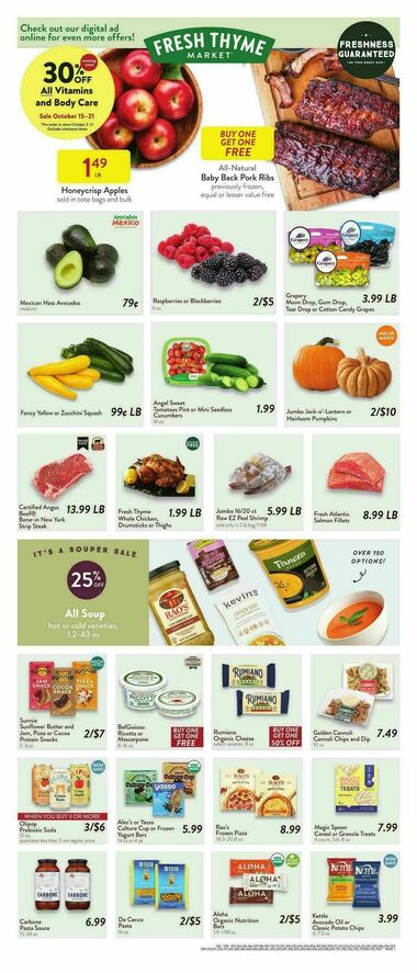 Their weekly ads feature a diverse range of items, including fresh, locally-sourced produce, natural and organic groceries, bulk foods, vitamins and supplements, and a variety of specialty and gourmet products. With a strong focus on healthy and sustainable options, Fresh Thyme Farmers Market aims to make it easy for you to shop for the products that align with your values and preferences. Keep an eye on their weekly ads to stay informed about the most up-to-date deals and discounts.