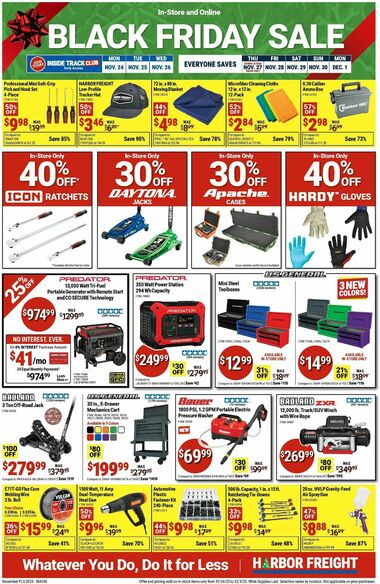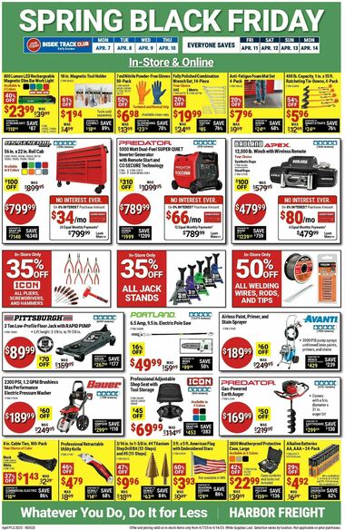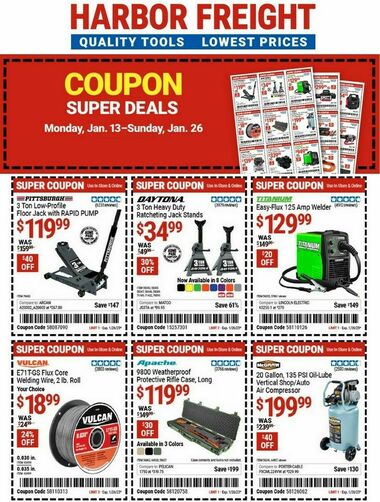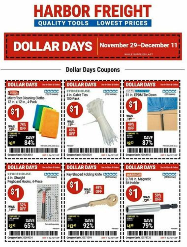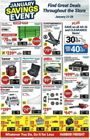 Harbor Freight Tools is a tool and equipment retailer that operates over 1000 stores in the U.S. The company offers more than 5,000 tools and accessories, from power tools and hand tools to electrics and engines and generators. Harbor Freight Tools is famous for its high-quality tools that are offered at the best prices in the industry. At Harbor Freight Tools you can enjoy exclusive offers on items like gardening products, safety equipment, DIY tools and much more. On this page you can find even cheaper products released in Harbor Freight catalogues. These deals enjoy great popularity among the customers, so don't miss any of them!