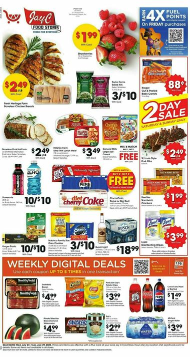 Explore the latest savings and exclusive offers at Jay C Food Stores with their weekly ads and deals on this page. Every week, customers can discover a fresh selection of discounts and promotions available at their local Jay C location.