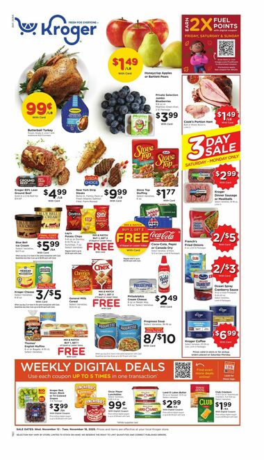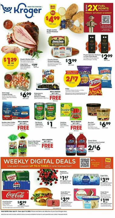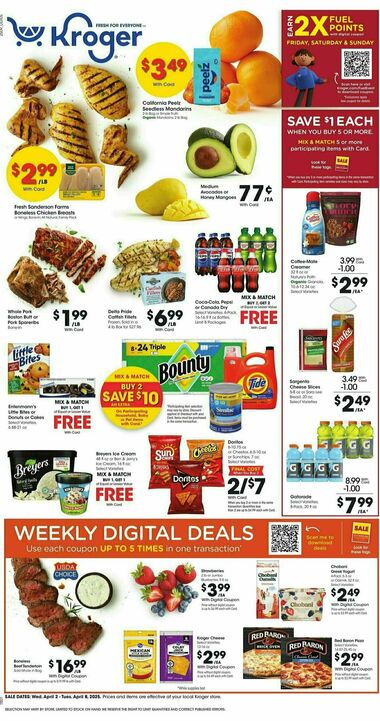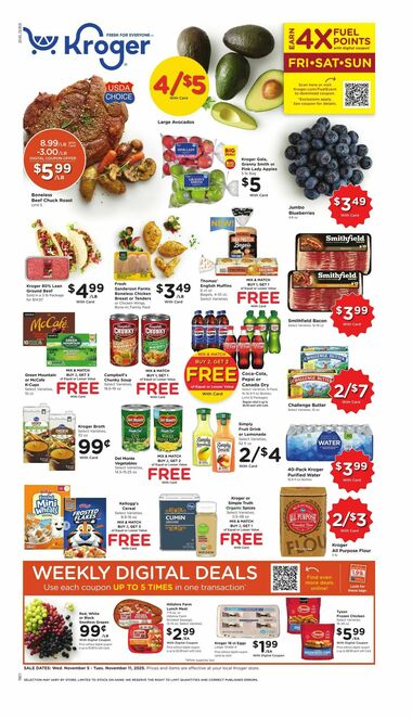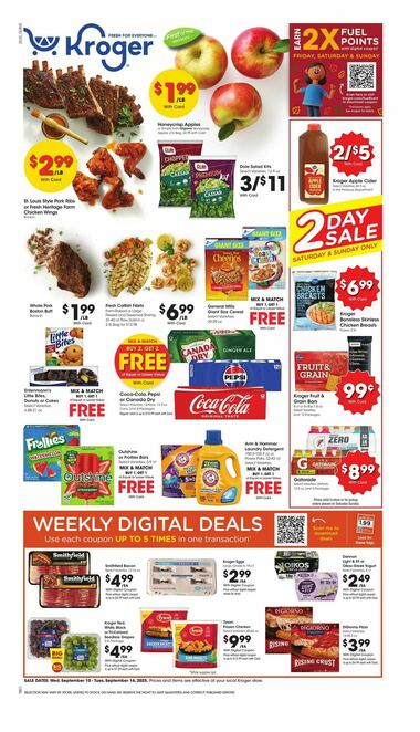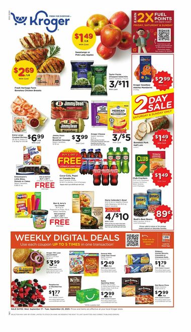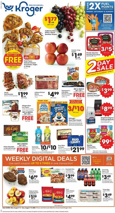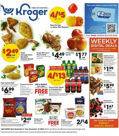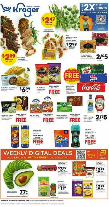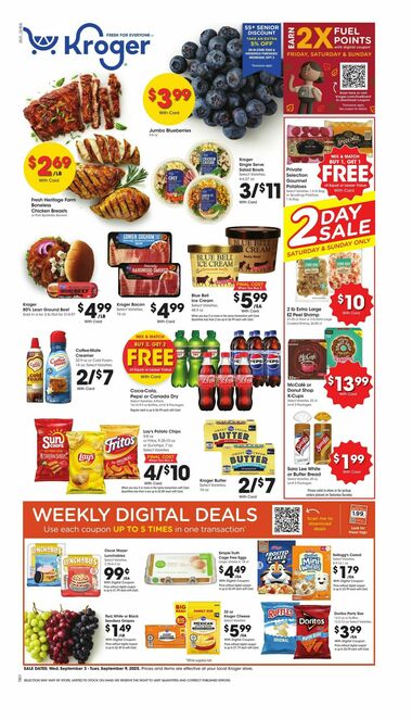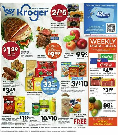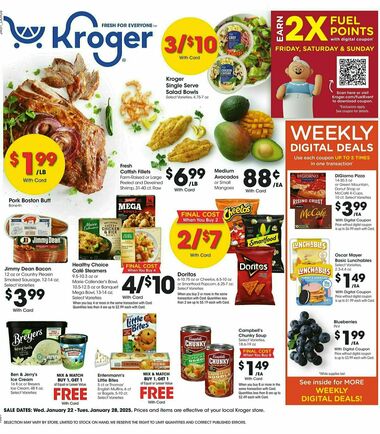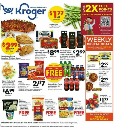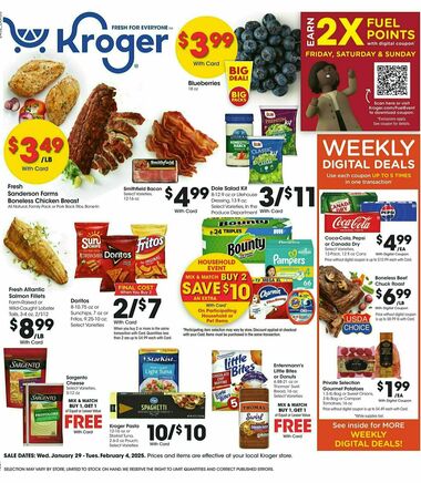 Kroger is the second-largest general retailer in the United States that operates over 2,500 supermarkets and multi-department stores. Kroger offers thousands of quality food and household products from popular brands and companies. You can take advantage of exclusive offers on both food and non-food items across various product categories like meat and seafood, fruit and vegetables, health and beauty, cleaning and household, babycare, products for pets, electronics, jewellery and much more. On this page, you may find all the latest offers and special buys for Kroger that will make your shopping experience even more enjoyable.
