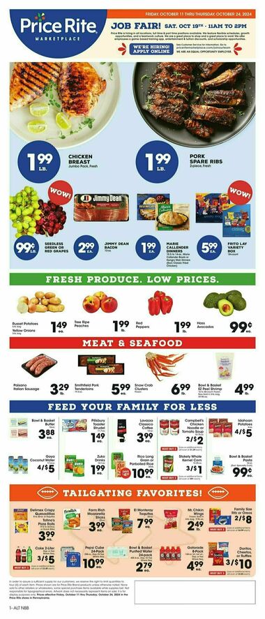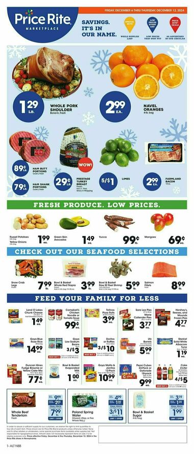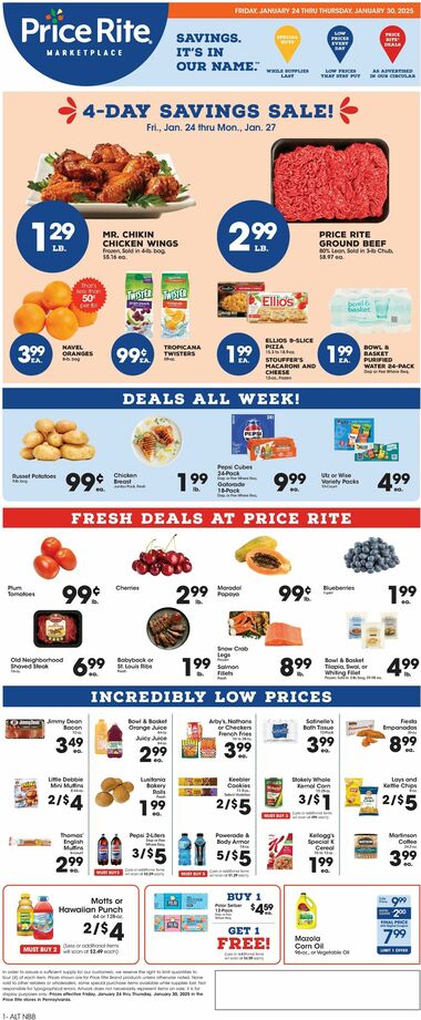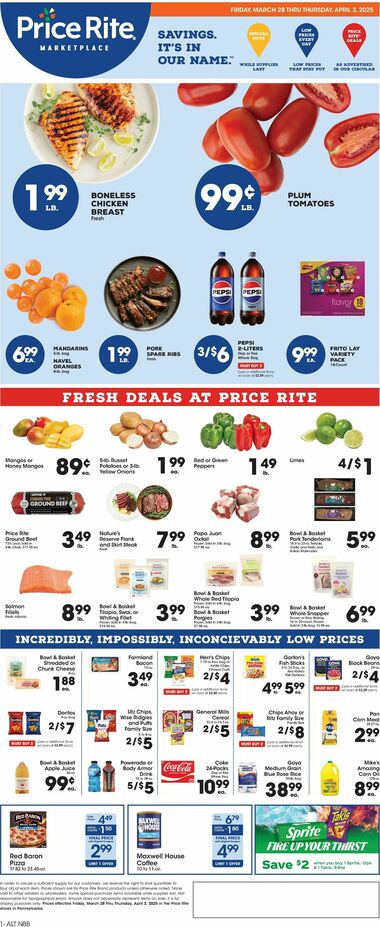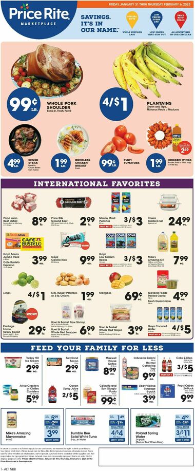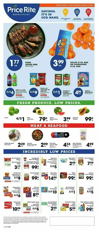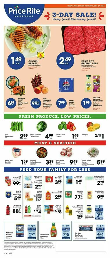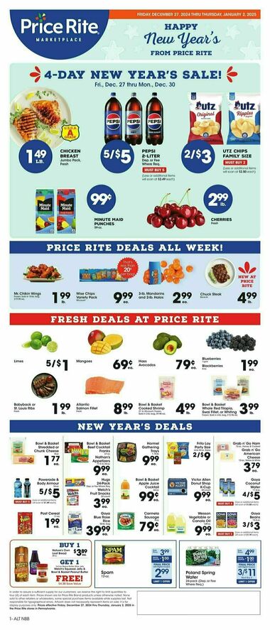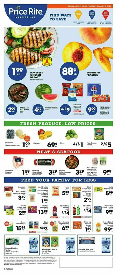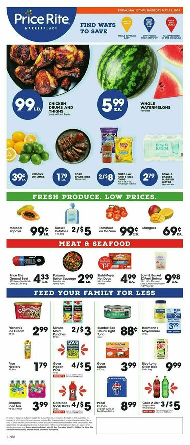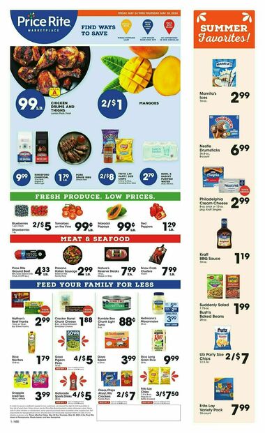 This page provides you with the latest weekly ad and specials for Price Rite, a rapidly-growing supermarket chain that is dedicated to providing the highest quality products to consumers. In more than 60 stores customers can find well-known brands they love and trust as well as the company's private brands at the absolute lowest prices. Price Rite offers its customers many of the most popular grocery items from various categories - dairy, deli, bakery, vegetable, meat, as well as natural and organic products. Every Friday the latest weekly ad is released on this page. Don't miss it!