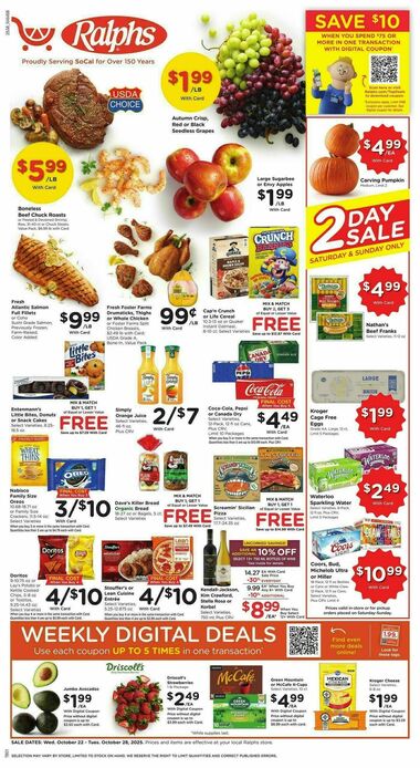 On this page, you may find all the latest weekly ad & deals for Ralphs. The Ralphs Weekly Ad is a valuable resource for customers looking to save money on their grocery and household shopping. It features a wide range of products at discounted prices, helping customers stretch their budgets.