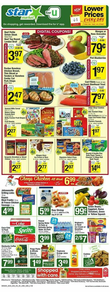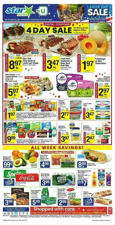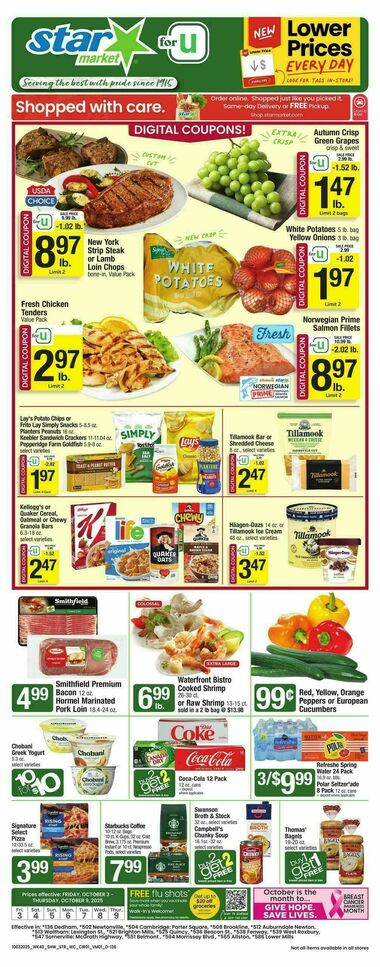 On this page you can discover the latest weekly flyer from Star Market. The Star Market weekly flyer showcases a diverse array of products, including fresh, locally-sourced produce, high-quality meats, bakery items, pantry staples, and more. You'll also find discounts on household essentials and other grocery items, making it a one-stop shop for all your needs.