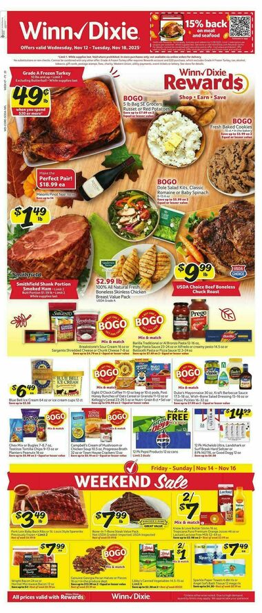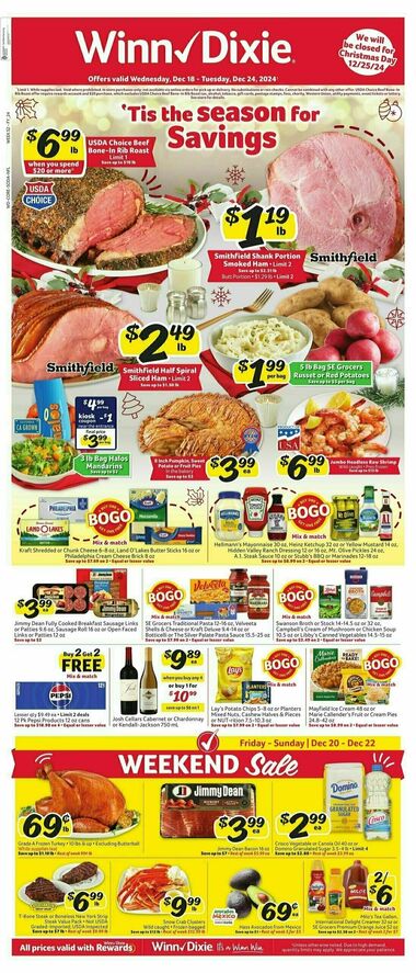 In these weekly ads, you'll find a wide range of items at discounted prices. From fresh produce to high-quality meats, pantry essentials, and household items, Winn-Dixie covers your shopping needs with fantastic deals. Shop smart, save more, and enjoy the quality you deserve with Winn-Dixie's weekly ads and special promotions.